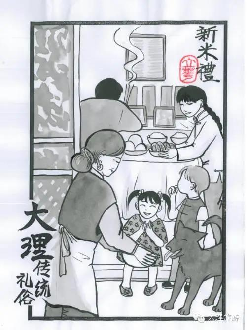 孩子們眼巴巴地看著阿奶阿媽在供桌前擺上已經煮好的雞、魚和豬肉,呈上熱騰騰的新米飯,還敬茶、敬酒,跪拜禱告結束后,阿媽又從甑子里舀出一碗新米飯,拿到院子給大黑狗吃,說大黑看家護院勞苦功高。