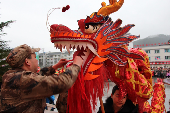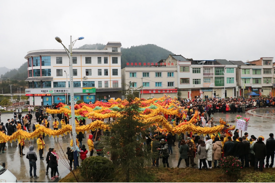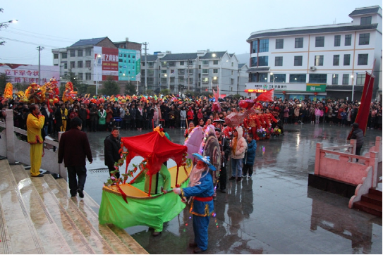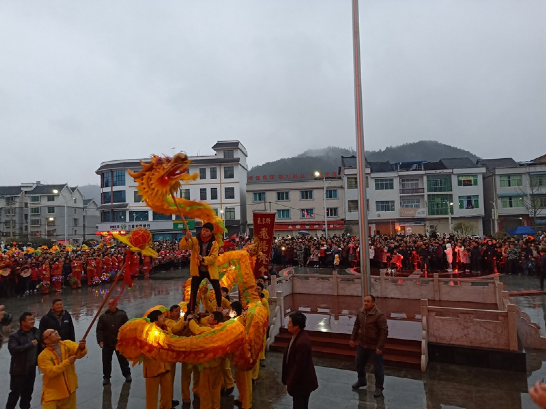 2019年2月16日農(nóng)歷正月十二是瓦寨鎮(zhèn)傳統(tǒng)大型集會活動日,舞龍為主要活動之一。午飯后,來自全縣各地的舞龍舞獅隊、花燈隊陸續(xù)到瓦寨政府廣場集結(jié),并在廣場右側(cè)有序排隊等待,各隊隊員精神抖擻、神采飛揚、迫不及待。前來參觀元宵舞龍的群眾和游客也不斷涌向廣場,大街小巷行人猶如潮涌,吆喝聲、歡笑聲、鑼鼓聲連綿不斷……下午五時許,活動在瓦寨鎮(zhèn)政府廣場正式開始,先是由鎮(zhèn)領(lǐng)導(dǎo)對脫貧攻堅各項惠民政策及5年來瓦寨取得的攻堅戰(zhàn)績進(jìn)行宣講,宣講慳鏘有力、扣人心弦,特別是5年來瓦寨取得的攻堅戰(zhàn)績,一致得到人民群眾好評和認(rèn)可。隨后,舞龍、舞獅、花燈表演紛紛上演,只見黃龍時而上下翻騰,時而昂首擺尾,雄獅時而就地打滾,時而賣萌撒嬌,樣子憨態(tài)可掬,花燈表演幽默滑稽,在前行中跑出各種套路,起伏波動、生動活潑,吸引了所有人的目光,贏得了陣陣喝彩……