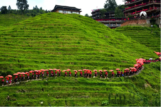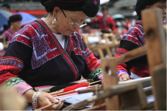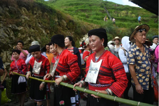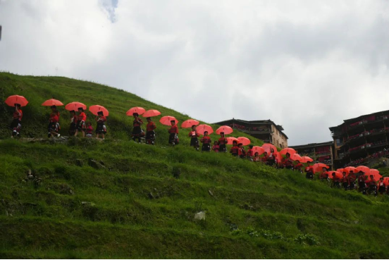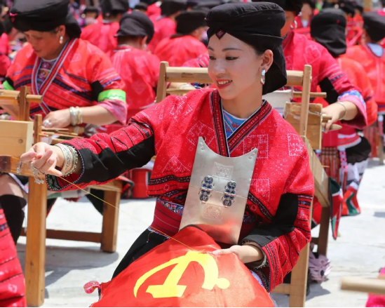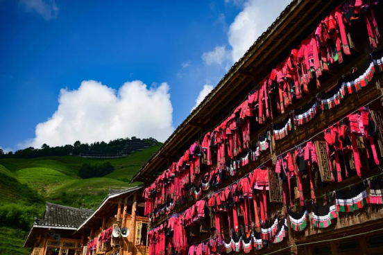 2014年,龍勝瑤族服飾(紅瑤服飾)以其精湛的手工藝和文化底蘊(yùn)入選國家級非物質(zhì)文化遺產(chǎn)代表性項目名錄擴(kuò)展項目名錄。如今的“曬衣節(jié)”已不僅是紅瑤的傳統(tǒng)佳節(jié),“農(nóng)歷六月六,廣西龍脊看紅衣”等曬衣節(jié)系列活動已成為桂林山水游的一張名片,讓各地游客充分感受多姿多彩的民族風(fēng)情。紅瑤同胞們用自己獨(dú)特的方式,為中國共產(chǎn)黨成立100周年獻(xiàn)上自己的祝福。