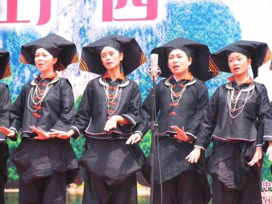 壯族傳統音樂主要是各種山歌曲調,是產生于古代的詩歌、音樂、舞蹈三位一體的古老聲樂藝術。在壯族地區,幾乎每個鄉都有幾個固定的曲調,有用于敘事的平調、抒發歡快心情的喜調、平緩柔和細膩深沉的詩調,富于教誨性的卜牙(老人)調和表現哀傷悲調等。曲式有支聲式、和聲式和復調式,用于獨唱、領唱、重唱、合唱的民歌調有相應的曲式結構。其中合唱又分為二聲部和三聲部。曲藝有末倫、唱師、比余等,唱師的唱本脫胎于經詩,一般為七言句式,以一鼓一鑼過門,無伴奏。曲牌各地不一,每個地方一般由AB調,比較固定。末倫流傳于桂西南地區,來源于巫調,發展成為曲藝。其詞為七言或五言,上下句式,以三弦伴奏,藝人自彈自唱,詞很優美。內容有說故事、訴苦情、嘆離別等,可長可短,形式靈活。比余流傳于紅水河中游東蘭、鳳山一帶,詞為長短句,腰腳韻,寓言式或隱喻式,生動活潑。演唱時,藝人與聽眾互相呼應,氣氛熱烈。