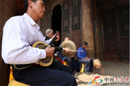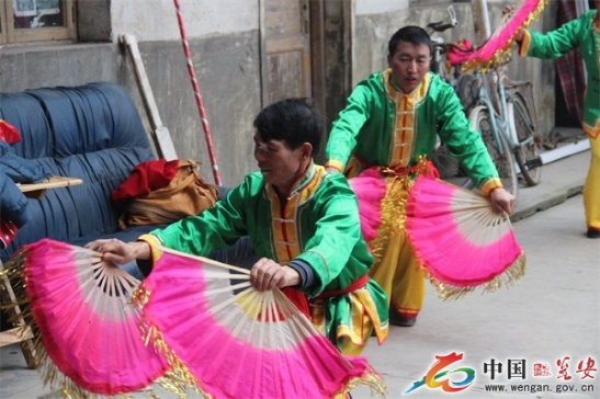 “燈夾戲”,即花燈夾川戲的一種藝術表演形式,是花燈與川戲饒有新意的巧妙組合,是一種匠心獨運的嫁接藝術。主要流傳于我縣平定營鎮。燈夾戲除了以其精湛的表演形式慶祝豐收景象及生意興隆外,還富有濃厚的宗教色彩。正月初九起燈時,所有戲班子成員在班主的帶領下,身著戲裝,跪拜在花燈菩薩(牌燈)面前,插香點燭、燒錢化紙,待供祭完畢后方可演出。正月十五是“化燈”的日子,戲班子成員要敲鑼打鼓,重新燃燭燒紙,站成一排恭敬祭奉花燈菩薩,然后化燈結束。