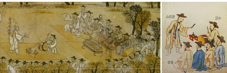 盤嗦哩通常由一人演唱,另一人用鼓伴奏。這種形式大約在18世紀中朝鮮王朝后期開始出現,19世紀末是它的黃金時代。關于它的起源有兩種不同的看法,一種認為它是18世紀的游浪藝人根據某種戲劇創造的,另一種則認為是來源于薩滿教儀式中的歌曲。盤嗦哩的故鄉是韓國全羅北道的南原,至今那里仍盛行這種演唱。