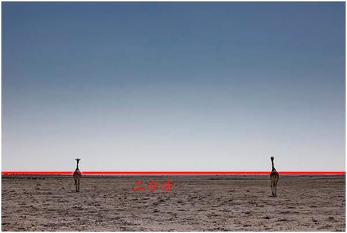 三分法構圖是最常用的一種構圖形式,它是將畫面上中下分成了1/3,可以理解成上、中、下,或者近、中、遠景的概念。