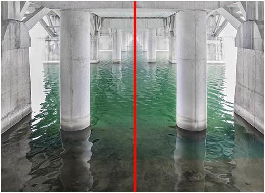 除了縱向對稱,還有水平對稱。水平對稱,一般適合拍攝上下對稱的題材,比如說水面的倒影。在太陽還沒出來的時候,已經有亮光的時候,天空呈現出一種藍調,水面又沒有高光,一切都是那么的寧靜,因為藍色是讓人很安靜的一種顏色,很舒服。如果你看到了這時候水面的景色,倒影還不錯的話,不妨采用這種方式。