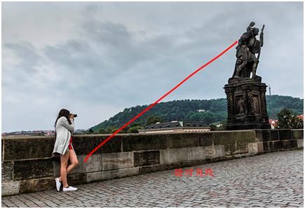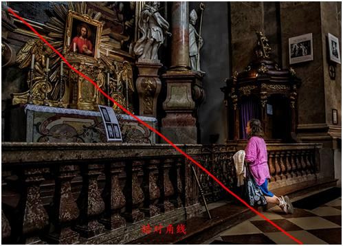 我們看到下面這張圖也是以對角線的構圖形式,只不過這個對角線從畫面中明顯的看不出它是一個對角線,而是畫面中一些重要元素形成的一個對角線趨勢,我們暫且把它稱之為暗對角線。