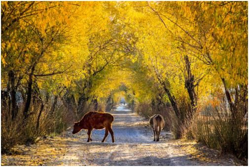 第二點,拍攝時機的把握上還是差了一點,應該在牛走到比較亮的地方,才去拍攝,這樣主體會亮一些,在晨光的照耀下,金黃色的毛色也會更醒目。