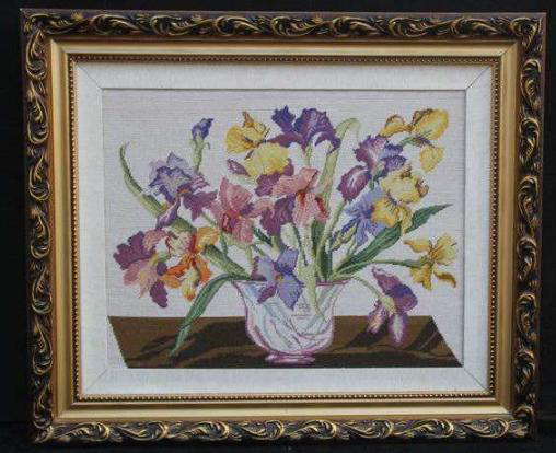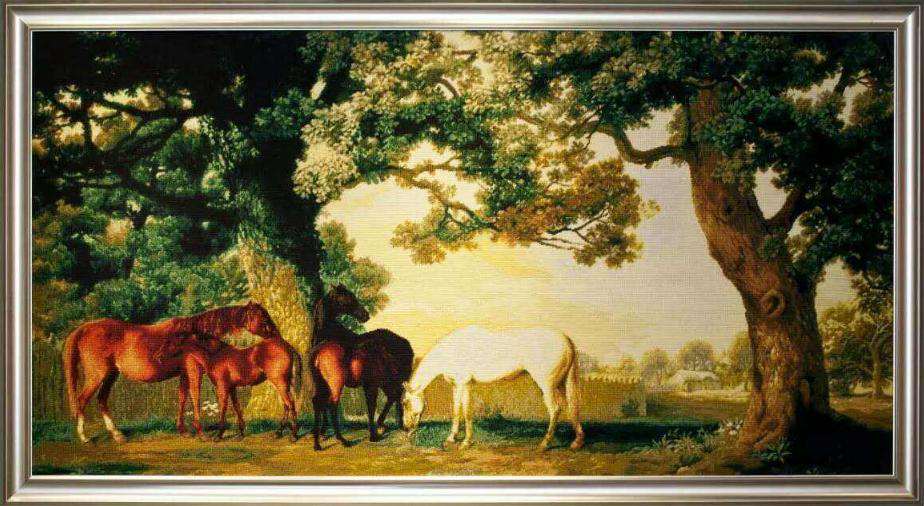 一般畫面較大,多數(shù)復(fù)制名畫、人物和風(fēng)景照片。用線顏色往往達(dá)數(shù)百種,特別強(qiáng)調(diào)色階、色相的過渡,并注重人物神態(tài)的刻畫。作品常作為大型建筑的室內(nèi)裝飾。