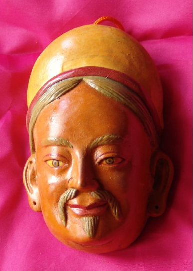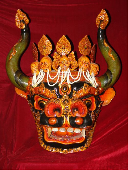 據(jù)普布次仁介紹,早在吐蕃王朝時期,西藏就有宗教舞蹈羌姆和名為“吉達(dá)吉姆”的歌舞劇。“吉達(dá)吉姆”在演出時演員要戴上白色面具,其表演的內(nèi)容是請求天神降雨或不要讓本地出現(xiàn)冰雹、刮大風(fēng)等自然災(zāi)害。這種歌舞劇在今天的日喀則地區(qū)仍然存在,人們常將之稱為“抗災(zāi)歌舞”。而在宗教舞蹈羌姆中,面具多數(shù)是根據(jù)佛經(jīng)及寺院殿堂中的塑像制作的,制作手法要求較高,以立體造型為主。