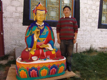 在泥塑技藝中除了面具外,佛像也是不計其數(shù),從形態(tài)上可分為喜相、怒相兩大類。“手工藝人在制作泥塑佛像時一定要按照標(biāo)準(zhǔn)進(jìn)行,就像畫唐卡一樣,這些藝人要把《造像度量經(jīng)》牢記在心里,在制作時要不停默背佛像的尺寸大小,所以你看這些已經(jīng)制作好的泥塑佛像在輪廓上都是固定的,只是在一些裝飾品上有所不同。”普布次仁一邊指著身旁的泥塑佛像一邊講解道。