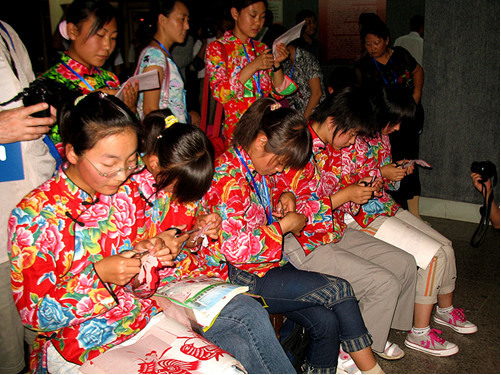 內蒙古和林格爾剪紙是中國北方剪紙最具代表性的剪紙文化遺存之一,是由世代生活在和林格爾地區的農牧民勞動婦女為主體創造的,經過代代傳承發展,成為承載本土民族文化基因的重要的非物質文化。二十世紀七、八十年代以來,隨著經濟社會向工業文明的急速轉型,人們的生產、生活方式和觀念發生了重大轉變,和林格爾剪紙面臨消亡的境地。老一輩和林格爾民間剪紙傳承人大都生活窘困,有許多已相繼辭世,她們長達七、八十年藝術實踐所形成的這一古老文化傳承也因此面臨人亡藝絕,而年輕一代剪紙隊伍又尚未形成,和林格爾剪紙的發展出現了青黃不接的瀕危狀況。帶著全社會的關注,1998年7月10日,在時任和林格爾縣委宣傳部長姚子明同志的支持下,和林格爾縣成立了內蒙古自治區第一個旗縣剪紙學術組織——和林格爾剪紙學會。和林格爾剪紙學會的成立,是和林格爾剪紙文化事業發展的一個里程碑和轉折點。多年來,和林格爾剪紙學會克服困難,深入搶救、發掘、整理和保護了縣境一大批珍貴的原生態剪紙遺存和老一輩剪紙傳承人。從1994年到2010年,共已累計搶救、發現珍貴的原生態和林格爾剪紙七萬余幅,發現和保護老一輩剪紙傳承人2600余人,其中有140余名70歲以上的老一輩剪紙傳承人,學會做為重點搶救、考察對象而開展了全年跟蹤式搶救、保護和記錄。和林格爾剪紙學會對已發現的老中年剪紙傳承人給予物質獎勵和精神關懷,激活了人們對于剪紙傳承的積極性和創作熱情,以農村婦女為主體的傳承群體又重新拿起剪刀,開始了剪紙的傳承和傳播。多年來,和林格爾剪紙學會在段建珺會長的帶領下,以“讓老大娘們重新拿起剪刀,讓年輕一代傳承剪紙”為宗旨,積極開展各類剪紙活動,努力探索剪紙在新形勢下的教育傳承和發展工作,涌現出以張花女、段建珺等為代表人物的一大批才華橫溢,在國內外有影響的杰出剪紙傳承人和經典剪紙作品。百歲剪紙大師張花女出生于清代光緒年末年,剪紙學會發現她時,老人已是96歲高齡。在學會的幫助下,她重新拿起剪刀,傳承和創作了大量剪紙,堪稱珍品。張花女的作品,將剪和紙的特性發揮到了幾盡完美的境界,圓潤而不浮華,凝重而不果板,簡約而不單簿,通俗而不失典雅。她剪的《魚龍變化》、《蒙人進城》、《碾場》等作品,反映了遠古時期仰韶文化與紅山文化、中原文明與草原文明在該區域碰撞、交流、融合的歷史遺存,具有很高的藝術考古價值。在長達一個多世紀生命的最后幾年中,張花女用剪刀和紅紙創造了一個當代中國剪紙的神話。