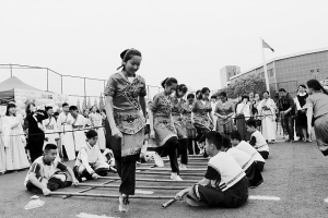 南京市第29中學初中部“2018校園民族文化節”上,學生們在跳竹竿舞。南京市第29中學初中部供圖