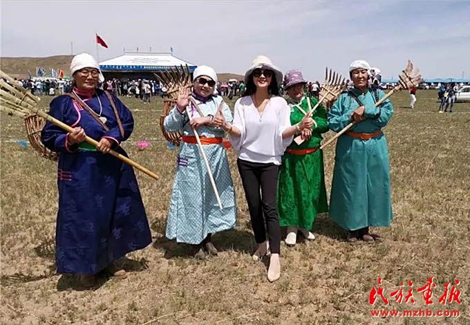 王金梅在錫林郭勒草原的夏季那達慕上體驗牧民生活。