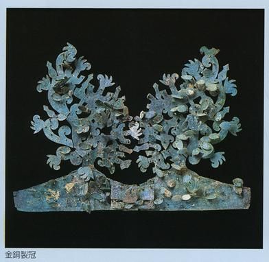 藤之木古墳出土的鎏金冠飾,在我國遼寧北燕墓地和高句麗墓均有類似文物發現,是鮮卑等北方少數民族貴族流行的冠飾,稱為鳥型冠飾。