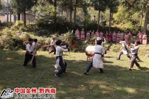 苗族“惹捱德亙”(也稱為:蘆笙棒舞)是一種依存于“蒙灑”苗人(苗族川滇黔方言區(qū)中的一支苗族)喪祭儀式中的傳統(tǒng)祭祀性舞蹈。這種舞蹈主要流傳在“蒙灑”苗人聚居的村寨中,是一種表現(xiàn)比較豐富、歷史意蘊深厚、特色鮮明的舞蹈。