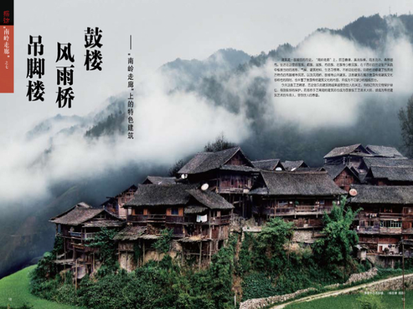 建筑是一部凝固的歷史。“南嶺走廊”上,層巒疊嶂,溪流縱橫,雨水充沛,森林密布。生活在這里的苗族、侗族、瑤族、布依族、壯族等少數民族,在千百年的勞動生產實踐中根據當地的地形、氣候、建筑材料、生活習慣等,不斷總結經驗,創造性地修建了獨具地方特色的吊腳樓等民居,以及風雨橋、鼓樓等公共建筑,這些建筑在展示我國傳統建筑文化多樣性的同時,也豐富了我國傳統建筑文化的內容,成為不可缺少的組成部分。
