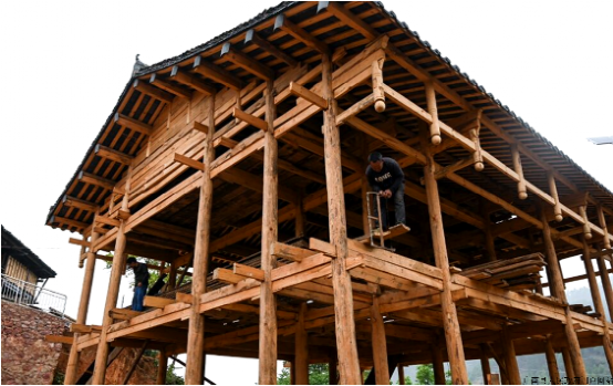 革里村的壯民族傳統文化與古村落相得益彰,干欄民居建筑是構建同體族群和諧友好的象征和標志。但是隨著社會的發展以及群眾生活水平的提高,如今,革里村越來越多的壯族群眾住進了鋼筋混凝土樓房,干欄式建筑已越來越少,那些被歲月打磨過的印記,都成了最美的鄉愁。