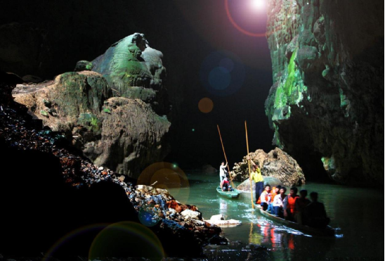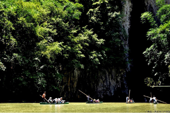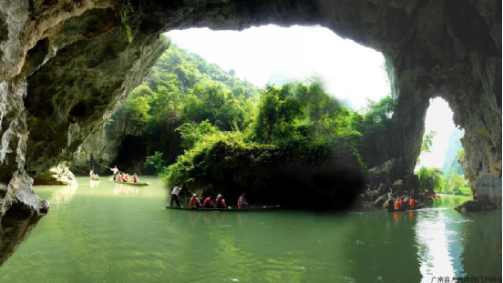 壩美,為壯語譯漢語為:壩—沖口,美—樹 ,因居住的沖口樹木多而得名。壩美村位于珠江流域西江水系馱娘江上游的阿科河畔。屬喀斯特地貌,區域內山峰奇特,河谷幽美,阡陌縱橫,河流山泉蜿蜒奔流,溶洞層疊散布在山體峰內,冬無嚴寒,夏不酷暑,氣候宜人。因四面環山,不通公路,進出寨子主要靠村前村后兩個天然的石灰溶巖水洞,村民們要摸著巖壁趟水、撐竹筏、劃獨木舟、坐小船,經過950米長的幽暗的“出水洞”和680米長的“湯拿洞”才能進出。由于地處偏僻,交通不便,基本不與外界交往,多年來壩美村長時期與外世隔絕。壩美村水源豐富,氣候溫和,自然生態環境未被污染,負氧離子質數高出城市數倍,游人在此休憩,心曠神怡,是一個溫濕潤,四季宜人的旅游勝地。就生態環境和歷史淵源來說,《桃花源記》問世1500多年,只聞其名,不見其實。相傳除唐代確認湖南省桃源縣的桃源洞為其原型外,目前全國就有冠名“世外桃源”的地名16個之多。而今天的壩美,不僅十分相似,而且還神似東晉文學家陶淵明筆下所描寫的“林盡水源,便得一山。山有小口,仿佛若有光;便舍船從口入……土地平曠,屋舍儼然,有良田美池桑竹之屬;阡陌交通,雞犬相聞……”的世外桃源。而且在當地村民中有許多歷史傳說:北宋皇祐四年(公元1052年),壯族起義領袖儂智高在邕州(南寧)昆侖關被狄青打敗后,退入以其繼父儂夏卿為首領的特磨道(廣南)后,至和二年(1055年),宋朝廷又派楊文廣領兵進剿,儂智高在突出重圍轉至阿科(今廣南縣壩美鎮治所)與宋軍周旋,終因寡不敵眾而離開阿科轉戰于丘北、開遠、蒙自、元江等地,后到大理不知所終。