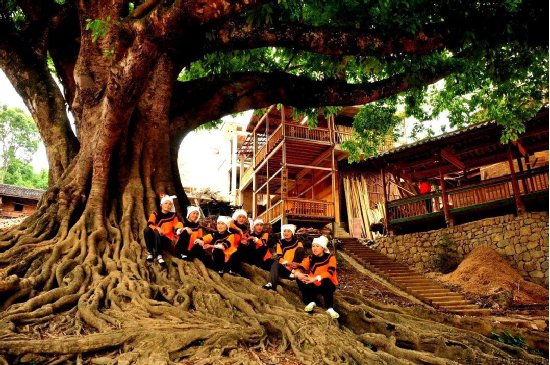 昔日壩美村房屋以落地和半樓居兩種桿欄式風格為主,主屋用木板架成,四周用樹枝圍攏,再敷上泥巴、牛糞攔合成的粘土,非常通風、保暖,上蓋瓦頂、抱廂、前置涼吧或圍欄,樓上住人,樓下關牲畜、堆雜物、當地壯族稱麻欄樓。《漢書·地理志》就有壯家“男耕女織”的記載:“男子耕農,種稻麻,女子蠶桑織績。”千百年來的刺繡技藝,之所以能夠代代相傳,延綿不絕,很大因素緣于它是不少壯族婦女賴以為生的基本技能。村民的食物、衣物、生產工具、生活用具基本上是自己生產,寨子中隨處可見轉動的水車、獨木舟、人工石磨、水磨、木碓、水紡織機、木榨油機、獨木風箱、木梨粑、木背柴架、木梯、木菜板、木燈架、木三角獨輪推柴車、竹木水桶、葫蘆酒壺、木儲物器、石缸、石磙等生產生活工具。它們的古樸粗拙樣,凝固了歷史,傳遞著遠古的文化信息。自2019年3月以來,壩美景區暫停對外開放進行提質升級改造。經過一年多的建設,一期工程已完成投資4億元,景區內基礎設施及旅游產品業態都有了質的提升。以世外桃源壩美景區為核心,以壯族文化為內涵,以稻作田園景觀、普千村、冷熱泉等內容為延伸,打造國內首個集田園休閑度假、壯族文化體驗、藝術創意創作、宗教朝圣等多重體驗為一體的旅游度假區,將通過改造民居、再造田園、以水為魂等方式打造現實版的“桃花源”。