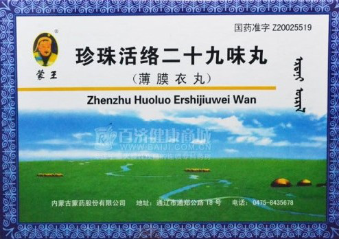 成份:石膏、地錦草、白云香、白豆蔻、苘麻子、檀香、肉豆蔻、木香、川楝子、草果仁、方海、白苣勝、紫檀香、體外培育牛黃、甘草、訶子、水牛角濃縮粉、草決明、梔子、藏紅花、土木香、黑苣勝、丁香、海金沙、肉桂、沉香、人工麝香、蓽茇、珍珠(制)。