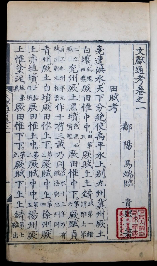 《文獻通考》為“十通”之一。“十通”即中國古代十部政書,系統(tǒng)完整地記錄了中國歷代典章制度沿革發(fā)展,為學(xué)習(xí)古代政治制度必不可少之參考書?!笆ā笔甲蕴拼庞幼锻ǖ洹?,連同此后宋鄭樵撰《通志》,元馬端臨撰《文獻通考》,合稱“三通”。清乾隆時加入官修的《續(xù)通典》《續(xù)通志》《續(xù)文獻通考》以及《清通典》《清通志》《清文獻通考》合稱“九通”。1935年再加上《清續(xù)文獻通考》,總稱為“十通”,其中以《文獻通考》最有價值。