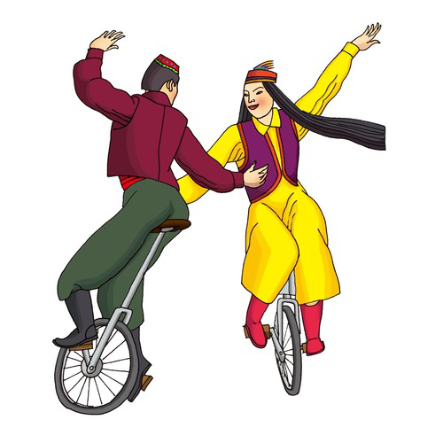 維吾爾族(獨輪車):維吾爾族有7214431人,主要聚居在新疆維吾爾族自治區。維吾爾族體育項目主要有摔跤、走繩(高架繩,維吾爾語稱為達瓦孜)、打尕尕 (打木棒)、較量、滑冰等。“叼羊”比賽是維吾爾族人民酷愛的一項傳統民間體育運動。