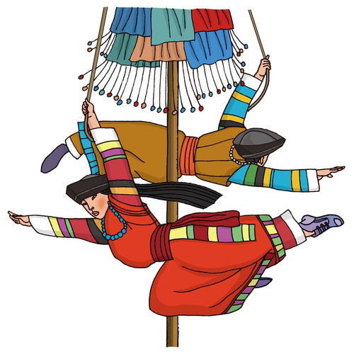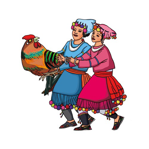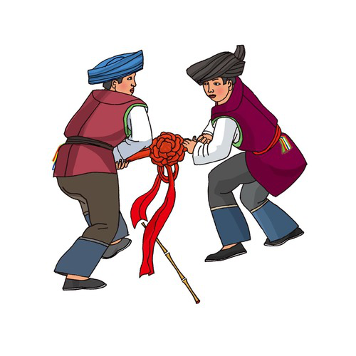 彝族(公雞啄架):彝族有6572173人,分布在四川、云南、貴州、廣西四省市、區。傳統的體育項目有摔跤、磨秋、蹲斗、舞鈴鐺、跳火繩、玩場、頂扁擔、頂肩等。
