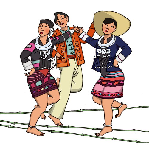 黎族(跳竹桿):黎族有1110900人,聚居在海南省。黎族的主要體育活動有跳竹竿、射箭比賽、打紅、摔跤、蓋冽 (串藤圈)、打狗歸坡(具有黎族特色的曲棍球賽)、大象拔河(又叫“拉烏龜)、格斗、賽跑牛、登山搶姑娘、蕩轉車、打秋千等。