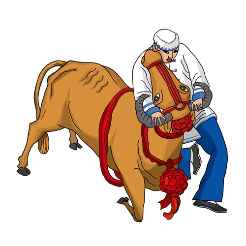 東鄉族(摔牛):東鄉族有373872人,聚居在甘肅省東鄉族自治縣,其余分布在鄰近各縣。東鄉族民間文體活動多種多樣,特別是冬春季節農閑時,最為活躍,主要有摔跤、當尕達之拿杜、咭咕杜拿杜、賽馬、跳跎跎、打土塊等。