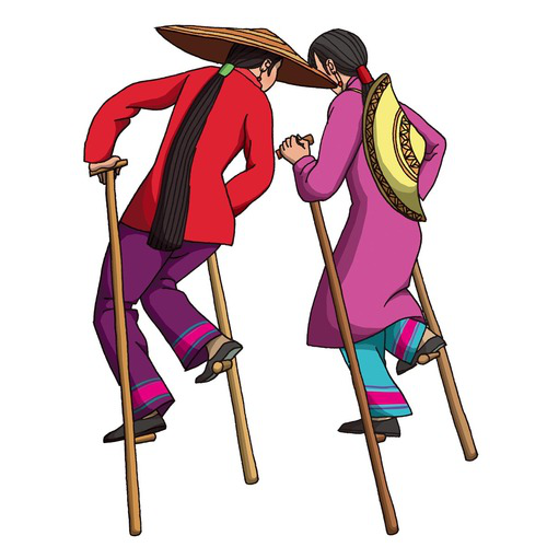 京族(高蹺):京族有18915人,聚居在廣西防城市的澫尾、巫頭、山心三島。京族傳統競技活動多與濱海文化生態環境有關,傳統體育項目有捉活鴨、摸鴨蛋、跳竹杠、舞花棍、頂頭、捉貝、走田、趕狗占窩等。