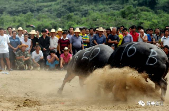 ▲ 斗牛之牛,都是專門精心飼養的,不從事耕地、拉車、推磨等勞作,均為雄性水牛,分為寬角、窄角兩個級別。斗牛賽制,先為淘汰賽,決斗時改為單循環賽,最后勝出者為年度牛王。斗牛場面十分慘烈,動人心魄,觀眾少則數百,多則數萬。