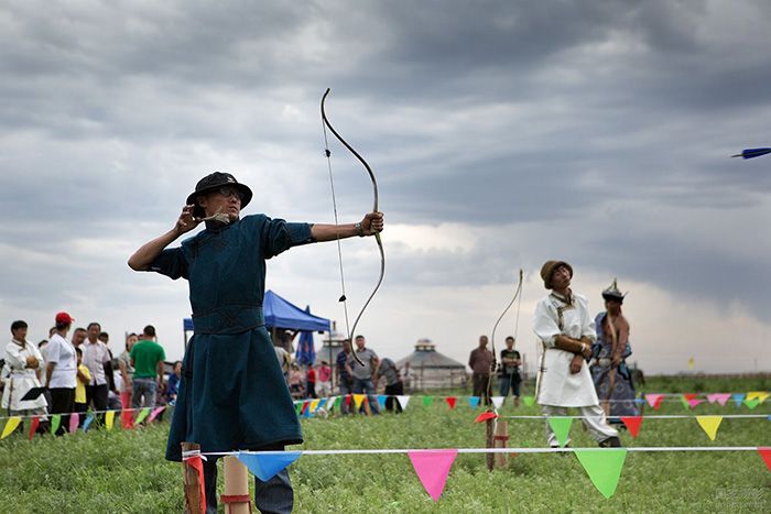 由于在歷史上弓箭是蒙古人生活中不可缺少的武器,人們也就非常尊重那些優秀的射手,而射手也樂于當眾表演或比賽自己的技藝,因而射箭便成了那達慕的重要比賽項目。