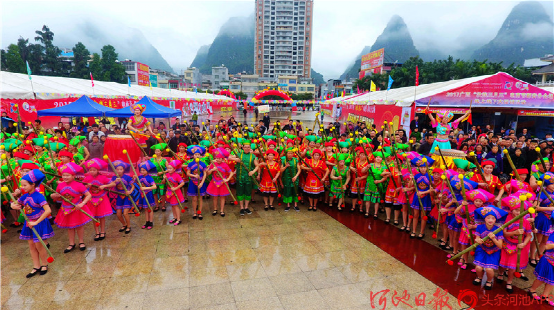 都安縣500名群眾歡聚一堂,打起扁擔,喜迎“三月三”。