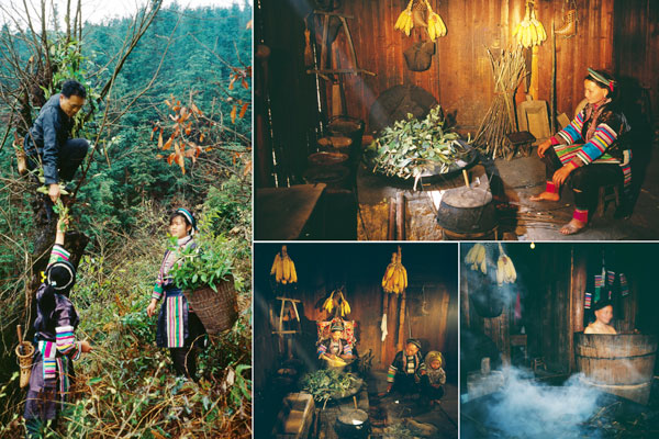 各地藥浴習俗不同,或每日洗浴,或擇吉日洗浴。由每戶最年長的男性上山采來追風藤、半邊楓、九龍盤、血藤等中草藥,洗凈,捆成把或切碎放入大鐵鍋中用水煮沸,待煮出藥汁后,撈去藥渣,把煮好的藥水放入專門藥浴的大桶——“龐桶”中。浴者赤身入桶,在保持適宜溫度(一般為38度左右)的藥液中浸泡20-30分鐘。鍋中有煮好的備用藥水,可保證每位藥浴者浴時的溫度相同。在藥浴中,通過浸泡,讓藥汁慢慢地滲入人體的毛細血管、遍及全身,達到以浴治病的目的。瑤族用藥水洗身,不分男女老幼,全家皆洗,一家人輪流洗,水臟了就換,冷了再加熱。瑤族將傳統(tǒng)禮儀規(guī)范滲透到藥浴治療當中,規(guī)矩是:先客后主,先小后大,先老后少,先男后女。