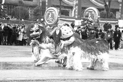 在湖南衡陽舉辦的南岳龍獅爭霸賽現(xiàn)場的舞獅表演。賈 艷 攝