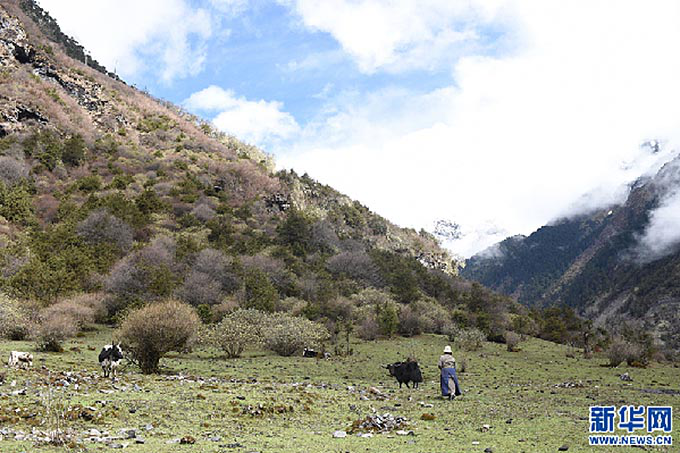 2018年5月9日,跟隨“新時代·幸福美麗新邊疆”網絡主題活動的隊伍,記者來到玉麥,見到了卓嘎本人。從北京回到玉麥的卓嘎,又變回了那個樸實的放牧守邊人。見到卓嘎時,她正拿著飼料準備去山上的草場喂牛。這也是她每天最忙碌的時刻。