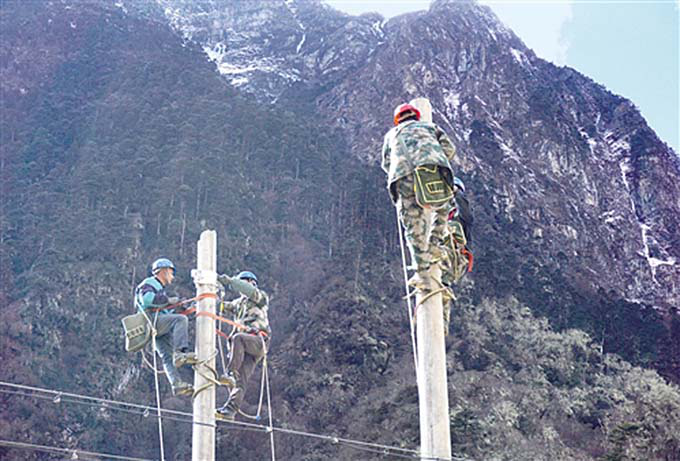 2018年初,隆子縣玉麥鄉電力線路全線貫通,9戶32位群眾將用上國家電網源源不斷的電能。圖為工人在玉麥鄉境內施工(和訊新聞)