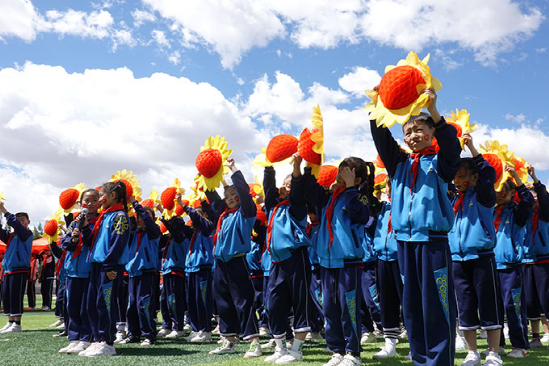 土默特左旗民族中學學生在運動會上表演。(玉榮 供圖)