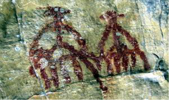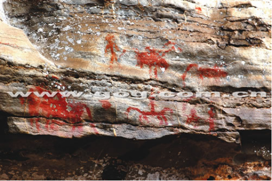 值得一提的是巖畫中的個(gè)體人物幾乎人人頭頂都有一支羽毛狀的頭飾,背上掛有披肩,類似今天的苗族傳統(tǒng)服飾,其中的頭飾藝術(shù)使得這里的巖畫充滿了躍動(dòng)的生命感。巖畫色彩是純一色的紅色,視覺沖擊力極強(qiáng),這里的巖畫圖像都充滿著愉快的生活氣息,呈現(xiàn)出一股浪漫主義的藝術(shù)風(fēng)格。這些巖畫表現(xiàn)出強(qiáng)烈的寫實(shí)風(fēng)格和民族風(fēng)格,生動(dòng)、形象地記載、反映了當(dāng)時(shí)人民的生活狀況、生產(chǎn)力水平和宗教信仰等,整個(gè)巖畫群完全如同一部記載民族風(fēng)情的史書,反映了遠(yuǎn)古先民進(jìn)入貴州、拓土興邦的歷史,是填補(bǔ)貴州歷史空白的重要史料。
