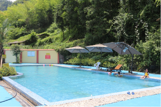 大人們在青山綠水間泡溫泉、賞風景,孩子們在兒童水上樂園嬉戲玩鬧,中晚飯點時在農家樂里吃著當地流水養殖的生態魚,體驗著鄉村風情,舒適愜意遍布全身。