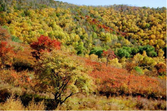春夏之時,各種花木相繼開放,形成了山花爛漫的自然植物景觀,游人漫步山間,習習涼風吹來,暑氣盡去盡情領略大好河山的美妙景致,入秋,色葉木和果木顯露出其成熟的姿態,紅的葉子、黃的葉子、紅的果實成片出現,間以綠色常綠樹,如畫家筆下的油畫,具極強的藝術感染力。山村田野一派豐收景象,梟梟炊煙升上天空,犬吠雞鳴,田園氣息濃重,讓人暇思,使人癡迷。各種果樹令游人一飽口福,盡享大自然予人的恩賜。