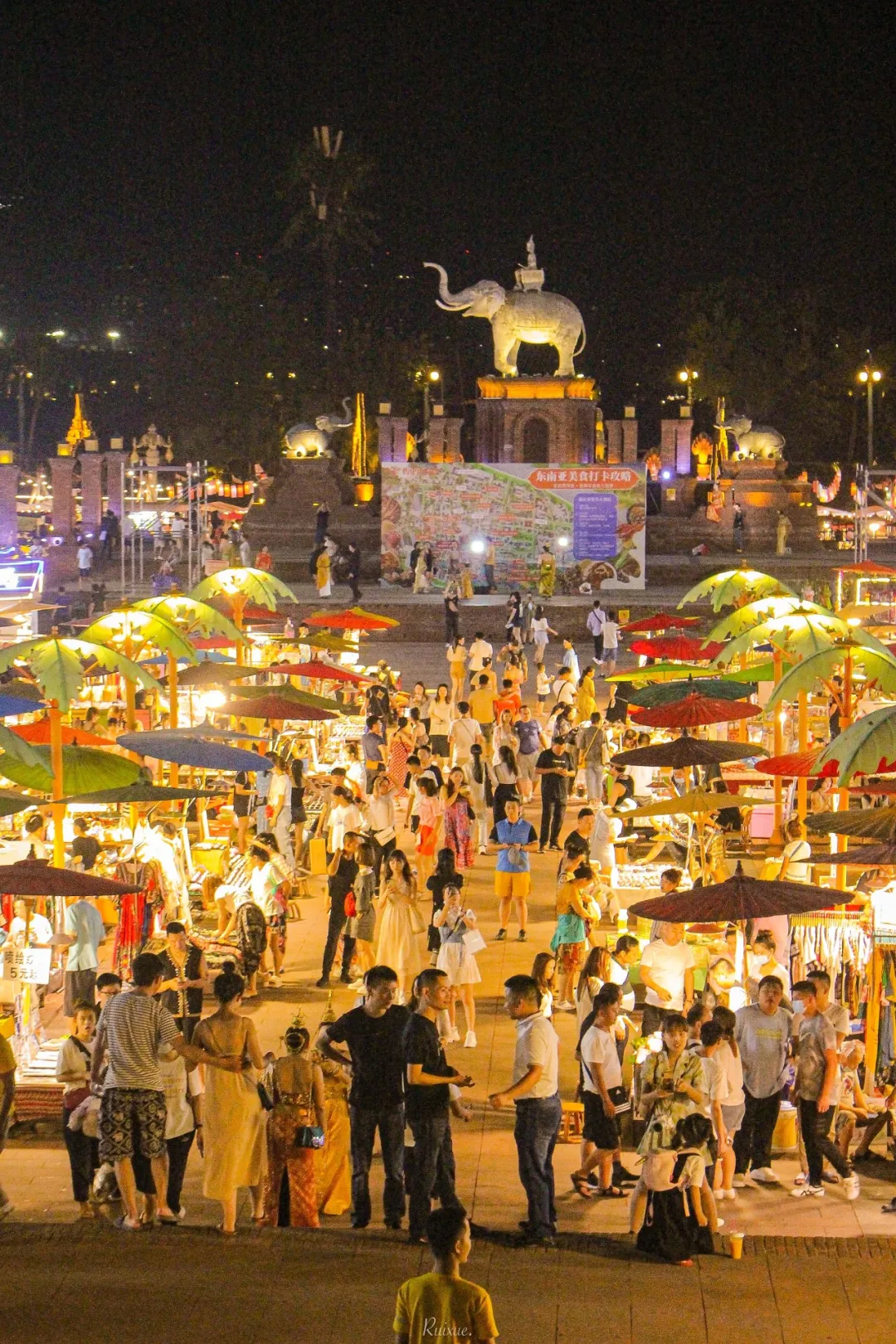 夜幕降臨,告莊西雙景星光夜市上千個(gè)特色攤位紛紛開(kāi)始營(yíng)業(yè),與壯美的瀾滄江江景交相輝映,成為西雙版納的新地標(biāo),熱帶夜生活風(fēng)情的最佳體驗(yàn)地。