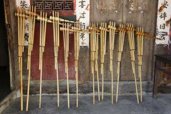 他想去想來(lái),在家后面有一片竹林,他就用竹子一管一節(jié),用綿條做成簧片,裝在竹管里面吹發(fā)出聲音,每一根竹管發(fā)出的聲音都不同。他就發(fā)給這些兄弟每人一截,二兄弟比老三的長(zhǎng)一點(diǎn),老三比老四的長(zhǎng)一點(diǎn),老四比老五的長(zhǎng),老六就是最短的。大家晚上回來(lái),大哥就說(shuō),你們干活真的挺賣(mài)力,每天都不知道怎么請(qǐng)你們吃飯,所以我想了一個(gè)辦法,以后每天聽(tīng)到我發(fā)出的聲音,說(shuō)明我已經(jīng)做好飯可以吃了,你們就回來(lái)互相打信號(hào)。大家都說(shuō),大哥是一個(gè)聰明人,這個(gè)辦法很好。