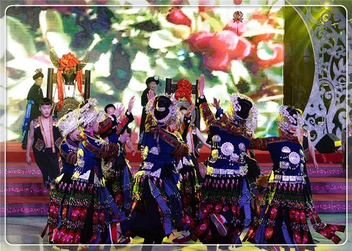 中國(guó)苗族網(wǎng)訊 2019年1月19日,由貴州省社科聯(lián)、貴州民族大學(xué)指導(dǎo),貴州省苗學(xué)會(huì)主辦,貴陽市苗學(xué)會(huì)、六盤水市苗學(xué)會(huì)、安順市苗學(xué)會(huì)、畢節(jié)市苗學(xué)會(huì)、銅仁市苗學(xué)會(huì)、黔西南州苗學(xué)會(huì)、黔東南州苗學(xué)會(huì)、黔南州苗學(xué)會(huì)、貴安新區(qū)苗學(xué)會(huì)、多彩貴州城建設(shè)經(jīng)營(yíng)有限公司共同協(xié)辦的“迎新春-蝶韻楓彩鼓聲來”2019春節(jié)聯(lián)歡晚會(huì),在貴州省貴陽市“多彩貴州城”展示中心隆重舉辦。貴州省9個(gè)州市及貴安新區(qū)苗族、布依族、侗族、土家族、彝族、仡佬族、水族、回族、白族、瑤族、壯族、毛南族、蒙古族、仫佬族、羌族、滿族等17個(gè)少數(shù)民族載歌載舞歌盛世,歡天喜地迎新春。 應(yīng)邀出席春晚的領(lǐng)導(dǎo)嘉賓有貴州省人大常委會(huì)原副主任、省苗學(xué)會(huì)老會(huì)長(zhǎng)楊光林,以及貴州省人大常委會(huì),貴州省社科聯(lián),貴州省民政廳,貴州省政協(xié),貴州民大,貴州省政協(xié),貴州省文化和旅游廳,貴州省總工會(huì),貴州省文聯(lián)、貴州省人大、省委宣傳部、省民政廳,民宗委,社科聯(lián),貴州省八大民族學(xué)會(huì)的相關(guān)領(lǐng)導(dǎo)等應(yīng)邀出席并觀看演出。 春晚得到了貴州省委宣傳部領(lǐng)導(dǎo)關(guān)心,省委常委、省委宣傳部慕德貴部長(zhǎng)對(duì)晚會(huì)專門作出重要批示,要求把春晚打造成一臺(tái)“思想性、藝術(shù)性、觀賞性統(tǒng)一的文藝晚會(huì),豐富春節(jié)期間群眾性精神文化生活,營(yíng)造歡樂、喜慶、團(tuán)結(jié)、祥和的節(jié)日氛圍”。 晚會(huì)緊扣“同心共筑中國(guó)夢(mèng),中華民族一家親”主題,圍繞共同團(tuán)結(jié)奮斗、共同繁榮發(fā)展主題,繼承和弘揚(yáng)中華民族優(yōu)秀傳統(tǒng)文化,積極展示貴州少數(shù)民族同胞改革開放40周年來翻天覆地的新變化,用少數(shù)民族原生態(tài)歌舞形式歌頌黨、歌頌祖國(guó)、歌頌民族大團(tuán)結(jié)。春晚節(jié)目,由貴州省各州市國(guó)家非遺保護(hù)節(jié)目、在中央春晚節(jié)目,由貴州省各州市國(guó)家非遺保護(hù)節(jié)目、在中央級(jí)、省市級(jí)比賽中獲獎(jiǎng)的各民族原生態(tài)蘆笙舞、錦雞舞、銅鼓舞、板凳舞,苗族飛歌、古歌、大歌、情歌、絕技;民族盛裝走秀;非遺文化展示等26個(gè)節(jié)目組成。 晚會(huì)由240位貴州各地苗族演員,50位苗族、布依族、侗族、仡佬族、彝族、土家族、回族等17個(gè)少數(shù)民族演員,在主持人的開場(chǎng)白介紹中,手持燈花、衣著盛裝在鼓點(diǎn)笙曲中步入會(huì)場(chǎng)。 接著,被國(guó)內(nèi)外譽(yù)為“東方迪斯科”的黔東南州臺(tái)江《反排木鼓舞》拉開笙鼓迎春的序幕,雷山國(guó)家級(jí)非遺節(jié)目《掌坳銅鼓舞》、《錦雞舞》,貴陽市花溪區(qū)《花鼓舞》、貴安新區(qū)原生態(tài)蘆笙舞《花坡韻》、黔南州《鼓龍鼓虎-長(zhǎng)衫龍》、兒童舞蹈《跺月亮》、畢節(jié)市納雍縣蘆笙舞《滾山珠》、凱里原生態(tài)合唱《春之歌》、安順留守兒童合唱團(tuán)《又見桃花開》、金竹樂隊(duì)蘆笙組合《酒歌》、銅仁市絕技《紙上飛仙》、黔西南州《板凳舞》等,一個(gè)個(gè)節(jié)目精彩絕倫、美輪美奐,舞出少數(shù)民族同胞“美起來、笑起來、富起來、強(qiáng)起來”的精神風(fēng)貌、音容笑貌。最后,貴州省17個(gè)世居少數(shù)民族240名演員齊唱《愛我中華》,在“五十六個(gè)民族五十六朵花,五十六個(gè)兄弟姐妹是一家”的歌聲中把整臺(tái)晚會(huì)推向高潮,拉下帷幕。 此次春晚民族文化濃厚、明星歌手薈萃、演員陣容龐 此次春晚民族文化濃厚、明星歌手薈萃、演員陣容龐大、節(jié)目精彩絕倫。這些節(jié)目,涵蓋了東部方言、中部方言和西部方言各民族支系。遍及黔東南州、黔西南州、黔南州、貴陽市、安順市、畢節(jié)市、六盤水市、銅仁市和貴安新區(qū)。老藝術(shù)家榜香、青年歌手阿幼朵、潘興周、雷艷、楊一方、阿娜丹、歐桑、楊佳茜、楊祖桃、楊思雨、楊廷勇、吳敏成、阿蕾倩、余秋陽、阿依三姐妹、谷阿斯組合、阿依山娃組合等20多名少數(shù)民族歌星紛紛登臺(tái)獻(xiàn)藝,演員達(dá)300余人。 貴州省人大常委會(huì)原副主任、貴州省苗學(xué)會(huì)老會(huì)長(zhǎng)楊光林說,春晚的舉辦,有利于提高民族同胞的戰(zhàn)斗力、凝聚力、感召力!春晚牢牢把握了“百姓富、生態(tài)美”兩條底線,通過晚會(huì)形式,吹響了少數(shù)民族同胞在黨中央和貴州省委、省政府的堅(jiān)強(qiáng)領(lǐng)導(dǎo)下,致力于決戰(zhàn)脫貧攻堅(jiān),決勝同步小康、實(shí)現(xiàn)鄉(xiāng)村振興的號(hào)角。是號(hào)召大家參與國(guó)家實(shí)施的“鄉(xiāng)村振興、脫貧攻堅(jiān)”任務(wù),努力實(shí)現(xiàn)貴州人民2020年和全國(guó)人民同步實(shí)現(xiàn)小康及全國(guó)人民正在努力實(shí)現(xiàn)的“中國(guó)夢(mèng)”作出貢獻(xiàn)的動(dòng)員令! 晚會(huì)當(dāng)天,春晚組委會(huì)主任、貴州省苗學(xué)會(huì)常務(wù)副會(huì)長(zhǎng)張榮斌介紹:“迎新春-蝶韻楓彩鼓聲來”2019春節(jié)聯(lián