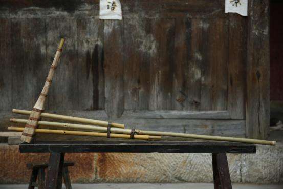 共鳴管:是套在笙管上端的一截竹管,可使音量明顯增大,多使用毛竹制作,依音高不同而異,以c、c1、c2三音為例,管長(zhǎng)分別為60厘米、30厘米、15厘米,余者類推。以上所述為黔東南地區(qū)的苗族蘆笙;在黔中、黔南和黔西北,則流行著另一種形制的蘆笙,笙管用白竹或筍殼竹制作,下端管口不堵塞。上端用兩道竹篾箍緊,笙斗制作時(shí)中間不剖開,而是從粗端挖起,直通細(xì)端吹口部位,然后用圓木塞把粗端開口堵嚴(yán),再用數(shù)道化篙皮箍住。