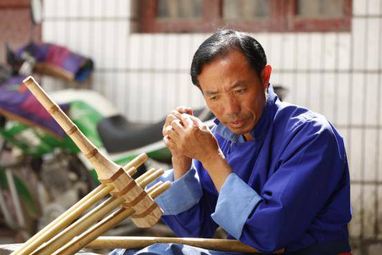 最難的是敲打簧片、割簧片、校單音、校和音這四個(gè)程序,最細(xì)致,最需要掌握的就是割簧片。把竹管的聲音和簧片的聲音全部調(diào)成一致,然后還要校正聲音。把單音校好以后還有雙管的,如果不把聲音校準(zhǔn),雙管就會(huì)和不起來,吹起來也不好聽,就不能用。