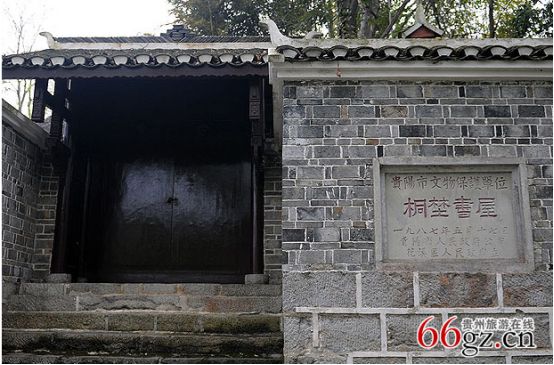 書屋分為兩層。一樓陳列著當年周起渭用過的物、讀過的書以及他的部分著作。斯人已去,留下的只是幾卷發黃的詩扉,靜靜地呆在玻璃櫥窗里,并不在乎它是否能“動天地、泣鬼神!”只是從泛黃的光澤中讓后人知道這是一縷不斷的文脈。二樓陳列著當代貴州書畫名家為桐野書屋創作的作品,鐵鉤銀劃中,縈繞的是對先賢的頂禮膜拜;丹青水墨中,孕育著文脈不斷的傳承。書屋的后面是一林參天的古樹,他們能作證:當年的周起渭——一個窮鄉僻壤的農家子弟怎樣寒窗苦讀,最終名滿京師的。
