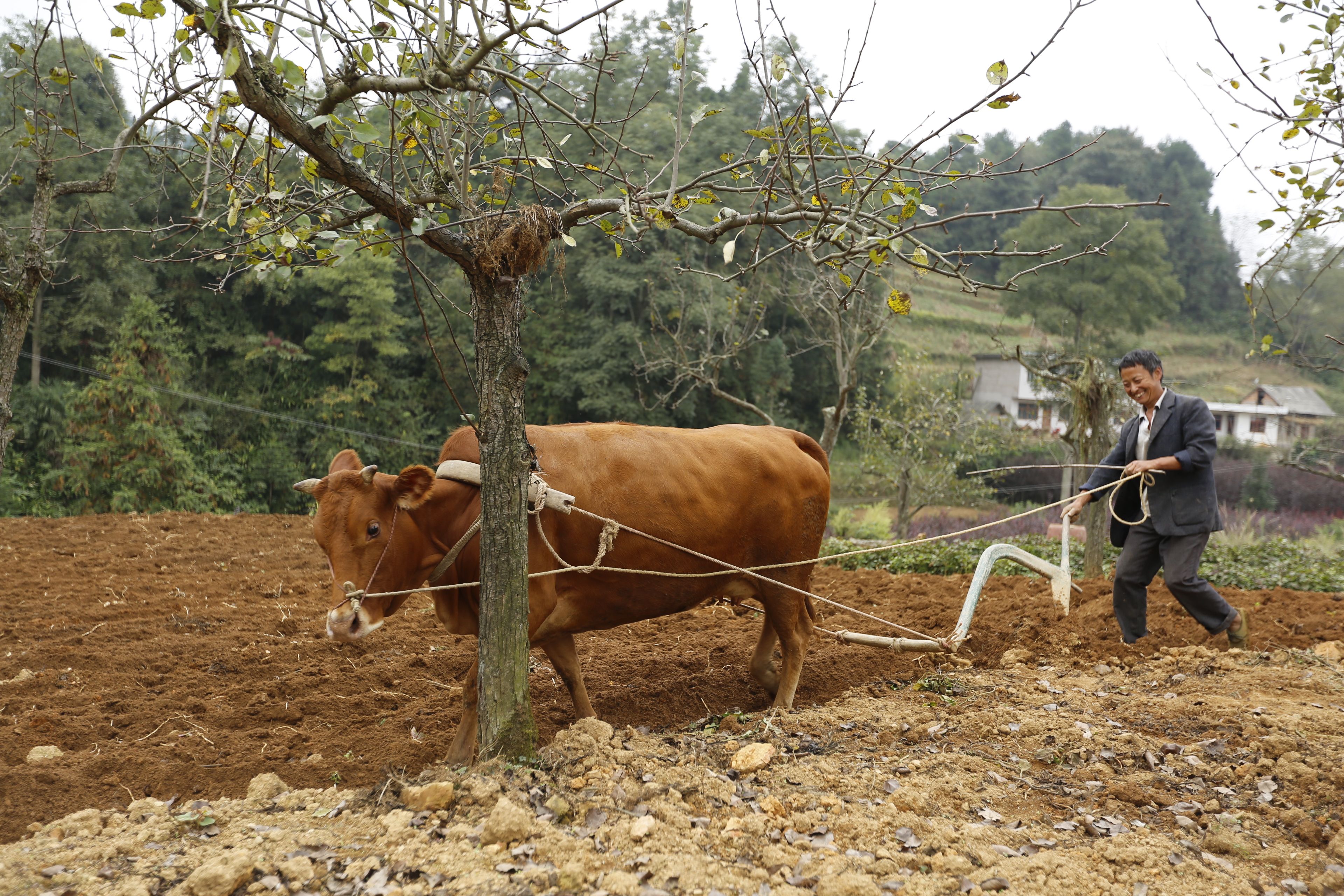 圖片說明:貴州貴陽苗族農作物種植-牛耕田
