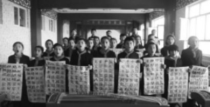 新疆阿克蘇地區烏什縣依麻木鎮國家通用語言學校的學生們在展示硬筆書法作品。烏什縣委宣傳部供圖