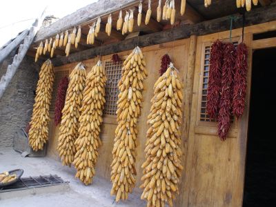 圖片名稱:羌族人在自家小院里儲(chǔ)存的食物